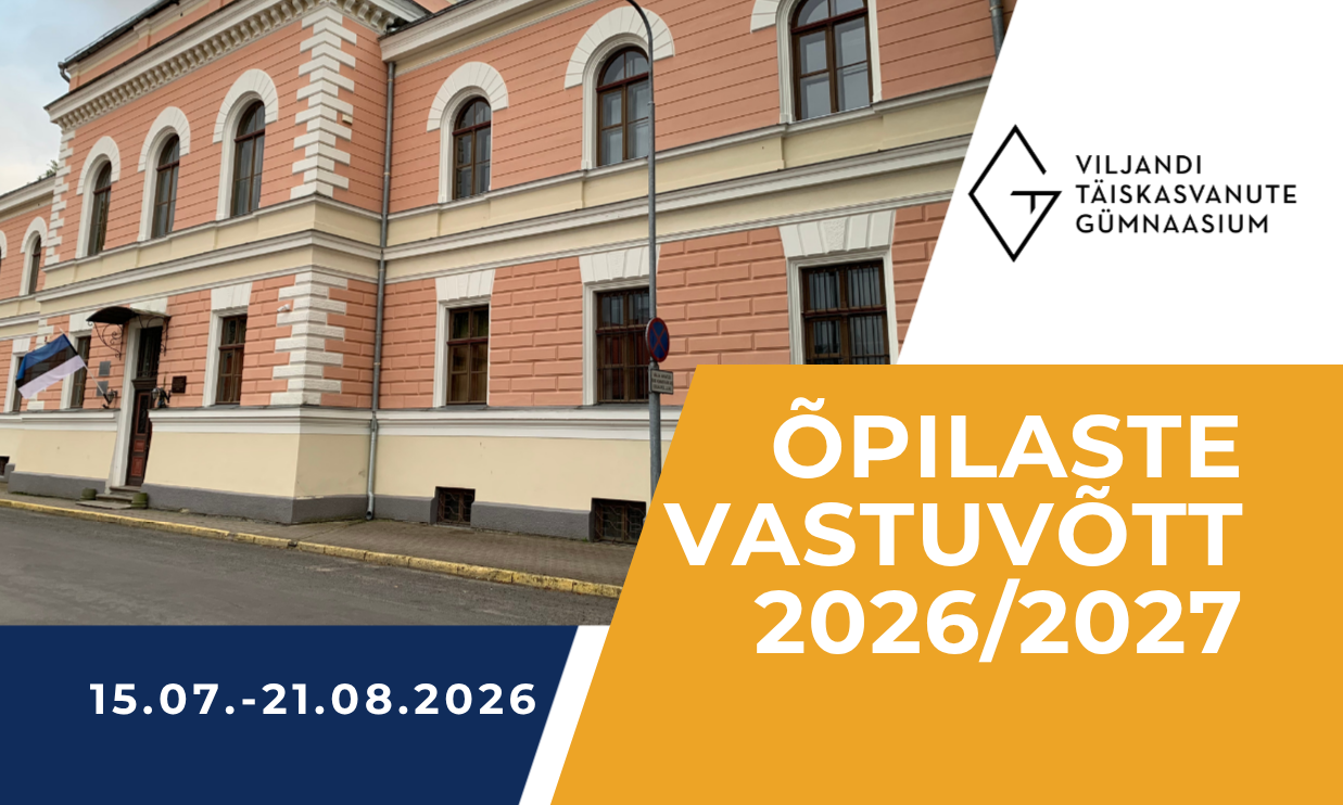 2026/2027 õppeaasta õpilaste vastuvõtt toimub 15.07.-21.08.2026 Ava foto Viimati muudetud 01.04.2026.